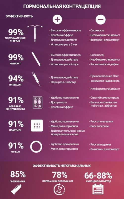 Приблизительная эффективность в процентном отношении различных методов контрацепции