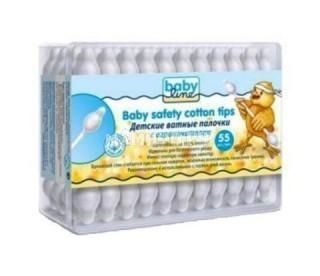 BabyLine Ватные палочки с ограничителемФорма выпускаДетские ватные палочки Baby line с ограничителем 55 шт.ПрименениеДетские ватные палочки идеально подходят для гигиены малыша.