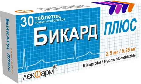 Бикард Плюс – это фиксированная комбинация высокоселективного бета-адреноблокатора бисопролола и диуретика гидрохлоротиазида. Сочетание двух антигипертензивных препаратов в одной таблетке Бикард Плюс и удобный прием 1 раз в день позволяет значительно упростить терапию пациентов с артериальной гипертензией.