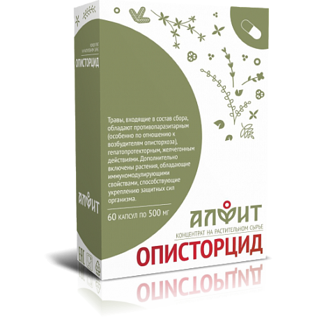 Травы, входящие в состав сбора Описторцид, обладают противопаразитарным (особенно по отношению к возбудителям описторхоза), гепатопротекторным, желчегонным действиями. Дополнительно включены растения, обладающие иммуномодулирующими свойствами, способствующие укреплению защитных сил организма.