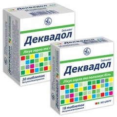 1 таблетка содержит деквалинию хлорида 0,25 мг, дибукаину гидрохлорида 0,03 мг.