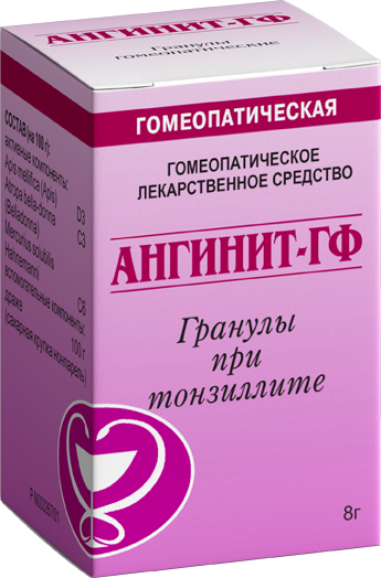 Ангинит-ГФ - гранулы гомеопатические по 8 г в упаковке:100 г гранул содержат Белладонна 1 г C3, пчела медоносная 1 г D3, ртуть растворимая по Ганнеману 1 г С6) - 100 г.
