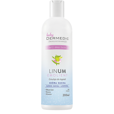 Dermedic Baby LINUM Эмульсия для купания с первого дня жизни бережно и нежно очищает, не нарушая липидный барьер кожи. Оказывает противовоспалительное и противозудное, противоаллергическое действие. Способствует регенерации и ускоряет процесс восстановления поврежденного эпидермиса.