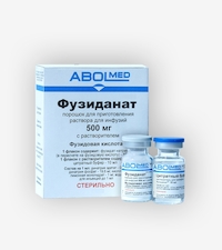 Фузиданат® порошок для приготовления раствора для инфузий 500 мг во флаконе из прозрачного стекла с резиновой пробкой и металлическим колпачком с пластиковым покрытием.