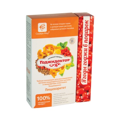 Годжидоктор Пищеваритет – комплекс для печени, желудка, поджелудочной железы, составлен из растений, которые устраняют воспалительные, вирусные и инфекционные процессы в желудке, кишечнике, печени, поджелудочной железе, нормализуют состав собственной микрофлоры, регулируют процесс опорожнения кишечника, устраняют диарею и запоры, колиты и язвенные изменения, гепатоз печени, разрушение клеток печени, камни в поджелудочной железе, панкреатит, гельминтозы.