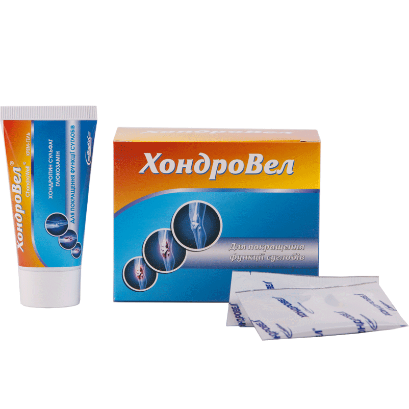 ХондроВел, участвуя в пополнении эндогенной недостачи глюкозамина, гиалуроновой кислоты и серосодержащих соединений, способствует восстановлению нормальных ферментативных процессов в клетках суставного хряща и синовиальной мембраны, уменьшению болевых ощущений и отечности в суставах.