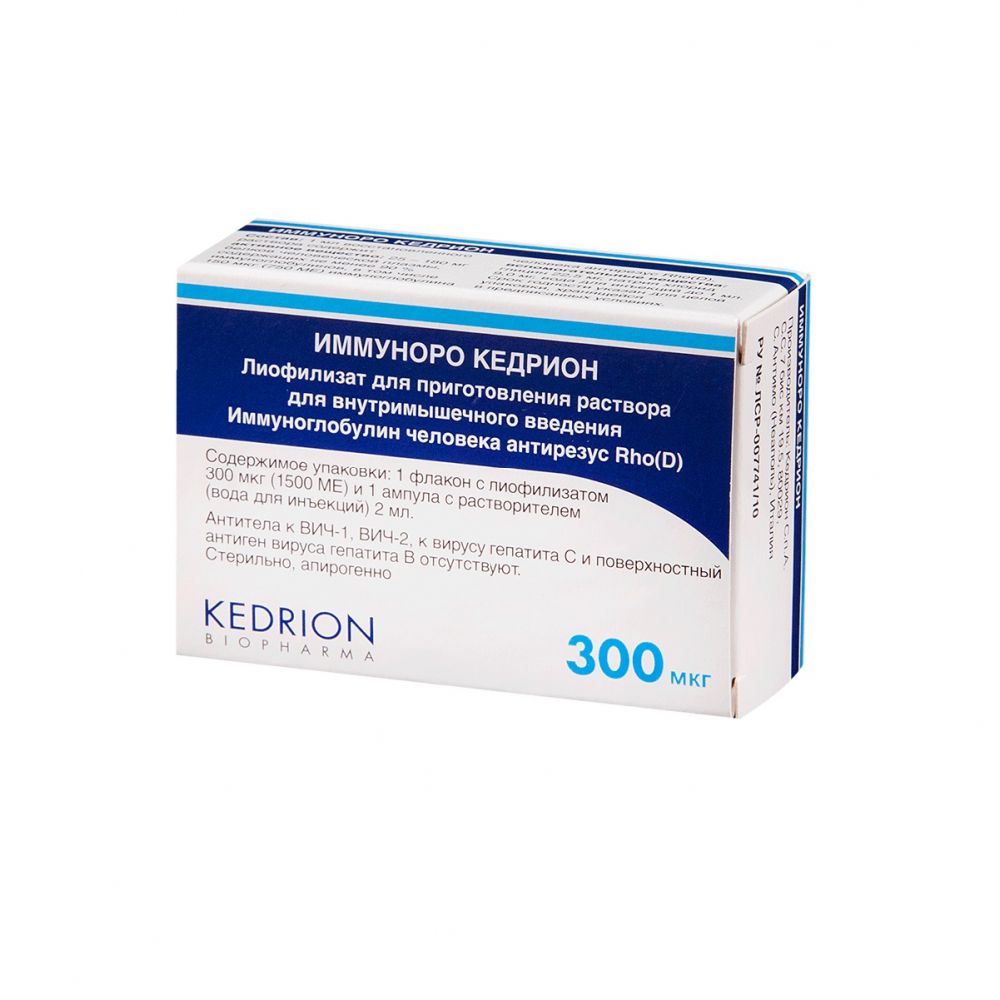 - Иммуноглобулин человека антирезус Rho(D) Иммуноро Кедрион р-р д/в/м введ. 0,3мг/доза №1
