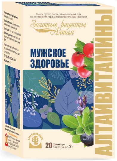 Большое количество натуральных биоактивных веществ, содержащихся в компонентах напитка "Мужское здоровье", серия "Золотые рецепты Алтая" окажут поддержку мужскому здоровью в перерывах между курсами лечения и профилактики проблем в половой сфере, а также не станут лишними для здорового мужчины, заботящимся о собственной сексуальной «состоятельности».