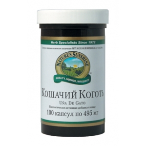 Кошачий коготь (Уна де Гато) – дикорастущая лиана, произрастающая в труднодоступных районах перуанских джунглей, по форме шипов напоминает кошачью лапу с когтями. По воздействию на иммунитет является, пожалуй, самым мощным растительным компонентом. Работая на клеточном уровне, это растение обладает сильнейшими иммуномодулирующими свойствами, что позволяет использовать его при заболеваниях желудочно-кишечного тракта, аллергиях, синдроме хронической усталости и депрессии. Уна де Гато помогает организму справиться с вирусными инфекциями и возможными осложнениями после них, дает организму силы успешно справляться с артритами, бурситами, ревматизмом, тромбофлебитами, варикозным расширением вен, простатитом. Благотворно влияет на процесс излечения от заболеваний, связанных с накоплением ядовитых, токсичных веществ в кишечнике: колит, гастрит, дисбактериоз, язвы, геморрой.