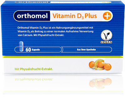 Ортомол Витамин Д3 Плюс рекомендован как для неограниченного по времени профилактического применения, так и в рамках превентивного комплексного лечения. Препарат Orthomol Vitamin D3 Plus рекомендован веганам и вегетарианцам. Витамин Дз, содержащийся в препарате, произодится из экстракта физалиса - лишайника.