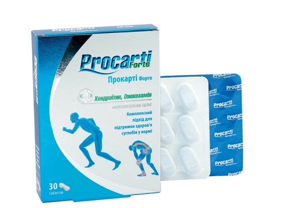 Состав диетической добавки ПРОКАРТИ ФОРТЕ обеспечивает совместную сбалансированную действие всех компонентов и восполняет недостаток незаменимых питательных веществ - хондроитина, глюкозамина, витаминов D3, E, С, минералов, антиоксидантов, которых так не хватает в рационе современного человека. Обеспечивает нормальное функционирование всех органов и систем, укрепляет кости скелета, а также замедляет развитие возрастных изменений в организме.