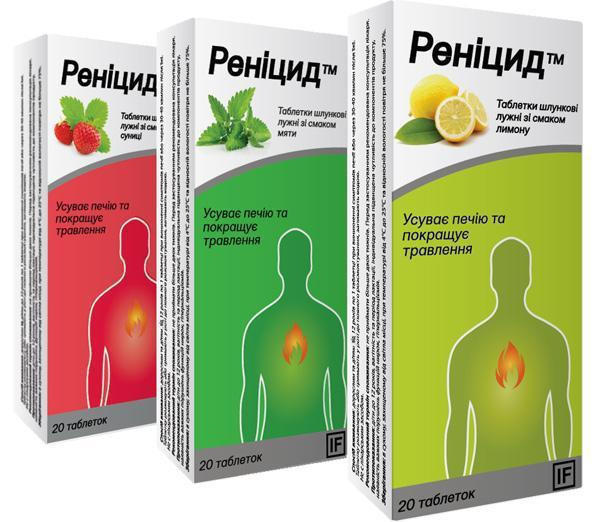 Реницид действует местно, нейтрализуя кислоту желудка.