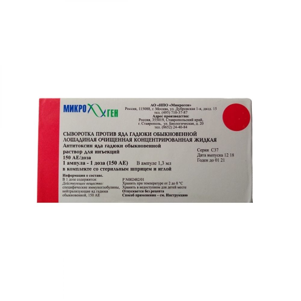 Сыворотка против яда гадюки обыкновенной лошадиная очищенная концентрированная жидкая аналоги