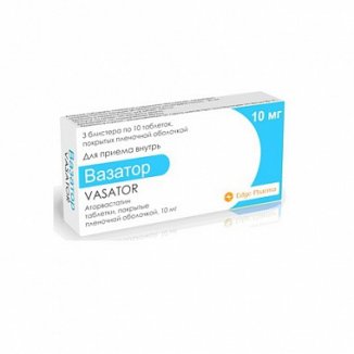 Лечение Вазатором может вызвать миопатию. Диагноз миопатии (боль и слабость в мышцах в сочетании с повышением активности КФК более чем в 10 раз по сравнению с верхней границей нормы) следует обсуждать у больных с распространенными миалгиями, болезненностью или слабостью мышц и/или выраженным повышением активности КФК. Больных необходимо предупредить о том, что им следует немедленно сообщить врачу о появлении необъяснимых болей или слабости в мышцах, если они сопровождаются недомоганием или лихорадкой. Терапию Вазатором следует прекратить в случае выраженного повышения активности КФК или при наличии подтвержденной или предполагаемой миопатии. Риск миопатии при лечении другими препаратами этого класса повышался при одновременном применении циклоспорина, фибратов, эритромицина, никотиновой кислоты в липидоснижающих дозах или азольных противогрибковых средств. Многие из этих препаратов ингибируют метаболизм, опосредованный изоферментом CYPЗА4, и/или транспорт лекарственных средств. Аторвастатин биотрансформируется под действием изофермента CYPЗА4. Назначая Вазатор в комбинации с фибратами, эритромицином, иммуносупрессивными средствами, азольными противогрибковыми средствами или никотиновой кислотой в липидоснижающих дозах, следует тщательно взвесить ожидаемую пользу и риск лечения и регулярно наблюдать больных с целью выявления болей или слабости в мышцах, особенно в течение первых месяцев лечения и в период повышения дозы любого препарата. В подобных ситуациях можно рекомендовать периодическое определение активности КФК, хотя такой контроль не позволяет предотвратить развитие тяжелой миопатии.