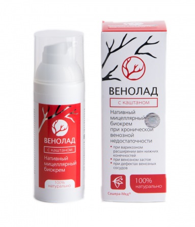 Венолад с каштаном – нативный мицеллярный биокрем на основе мицелл масел, сока и концентратов лекарственных растений, эковытяжек природных компонентов в нативном концентрате семян конского каштана, оказывающий регулирующее действие на состояние и тонус соединительной ткани и венозной стенки при варикозном расширении вен нижних конечностей и сопутствующих нарушениях системы кровообращения.