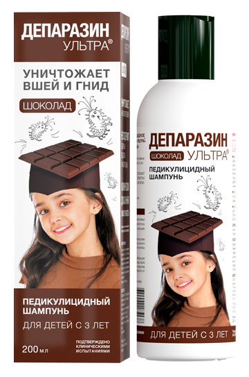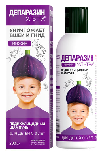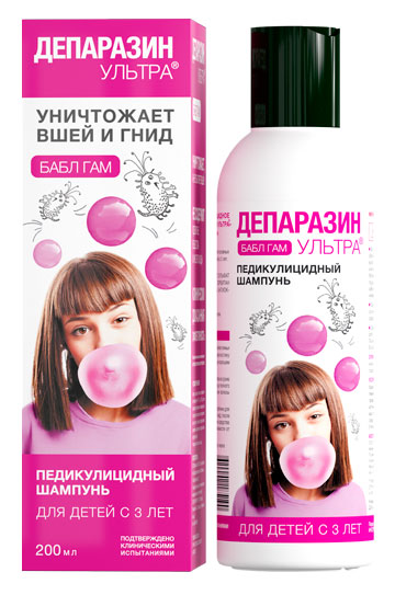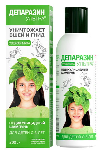 Шампунь Депаразин Ультра предназначен для уничтожения головных вшей и их личинок у взрослых и детей с 3-х лет. Вазелиновое масло в составе шампуня обволакивает вшей и гнид, не пропуская к ним кислород, в результате чего насекомые и личинки погибают. Средство выпускается с различными приятными ароматами.