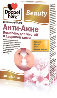 Доппельгерц Бьюти Анти-Акне Комплекс для чистой и здоровой кожи, компоненты кототорого способствуют улучшению состояния кожи, снижению воспалительных процессов, ее очищению и чистоте. Возвращают коже здоровый вид и красоту.