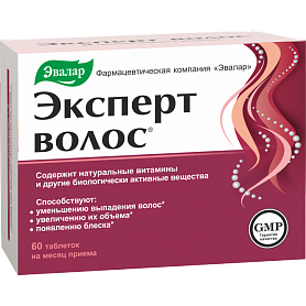 Средства Эвалар серии эксперт Волос содержат натуральные компоненты для активного роста волос, препятствуют их выпадению и благоприятно влияют на кожу головы. Эксперт Волос выпускается в виде таблеток, лосьона-спрея и шампуня. Для достижения видимого быстрого эффекта при сильном выпадении волос рекомендуется использовать одновременно все виды препаратов Эксперт Волос.