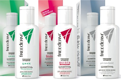 Шампуни Фридерм® Цинк и Фридерм® Деготь за счет содержания специальных компонентов (суспензия пиритиона цинка, деготь коры ивы белой очищенный) обеспечивают эффективное, быстрое и длительное действие на перхоть...