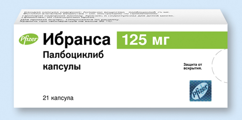 Препарат Ибранса в сочетании с фулвестрантом показан для лечения местнораспространенного или метастатического рака молочной железы положительного по гормональным рецепторам (HR+), отрицательного по рецептору эпидермального фактора роста человека 2-го типа (HER2-), после предшествующей гормональной терапии.