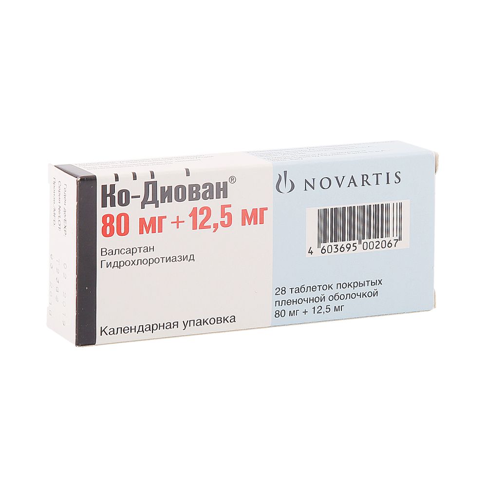 Препарат отпускается по рецепту таб., покр. оболочкой, 160 мг+12.5 мг: 14 или 28 шт.