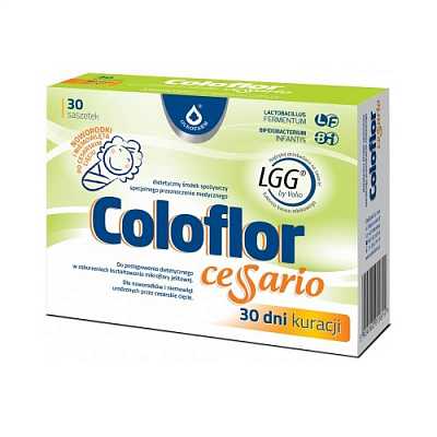 Coloflor cesario - пробиотик в каплях предназначенный для новорожденных и детей после кесаревого сечения. Он содержит 3 штамма живых бактериальных культур, отобранных по соображениям эффективности и безопасности, подтвержденным в научных исследованиях: Lactobacillus rhamnosus GG (ATCC 53103), Lactobacillus fermentum (CECT5716) Hereditum® и Bifidobacterium infantis M-63.