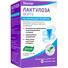 Лактулоза форте - послабляющий пребиотик с лактулозой, усиленный лактитом, экстрактами ромашки и фенхеля. Разрешен детям с 3-х лет.