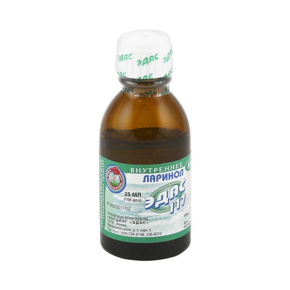 Цены на Ларинол Эдас-117 в аптеках: найдено 61 предложение и 61 аптека. Сравнение цен и наличие Ларинол Эдас-117 в аптеках, все цены актуальны на сегодняшний день. Купить лекарства вы сможете в любой из нижеперечисленных аптек. Укажите ваш точный адрес, чтобы купить Ларинол Эдас-117 в ближайшей аптеке