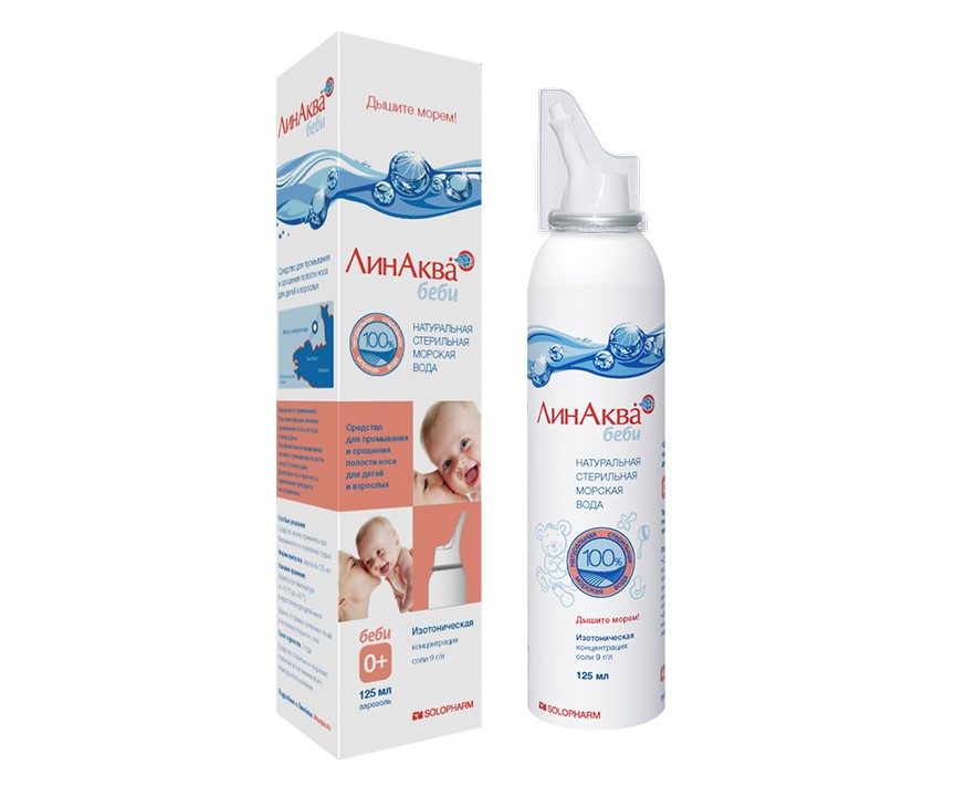 ЛинАква Беби - изотонический раствор морской воды для промывания и орошения полости носа.