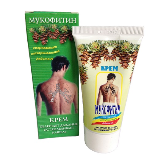 Мукофитин крем является эффективным средством для лечения воспалительных заболеваний верхних и нижних дыхательных путей. Мукофитин останавливает кашель, облегчает дыхание при простуде, бронхите, бронхиальной астме, пневмонии. Благодаря камфаре, алоэ и экстракту пихты Мукофитин обладает:согревающим действием,бронхолитическим действием,антисептическим действием,улучшает отхождение мокроты,усиливает кровообращение в зоне нанесения.