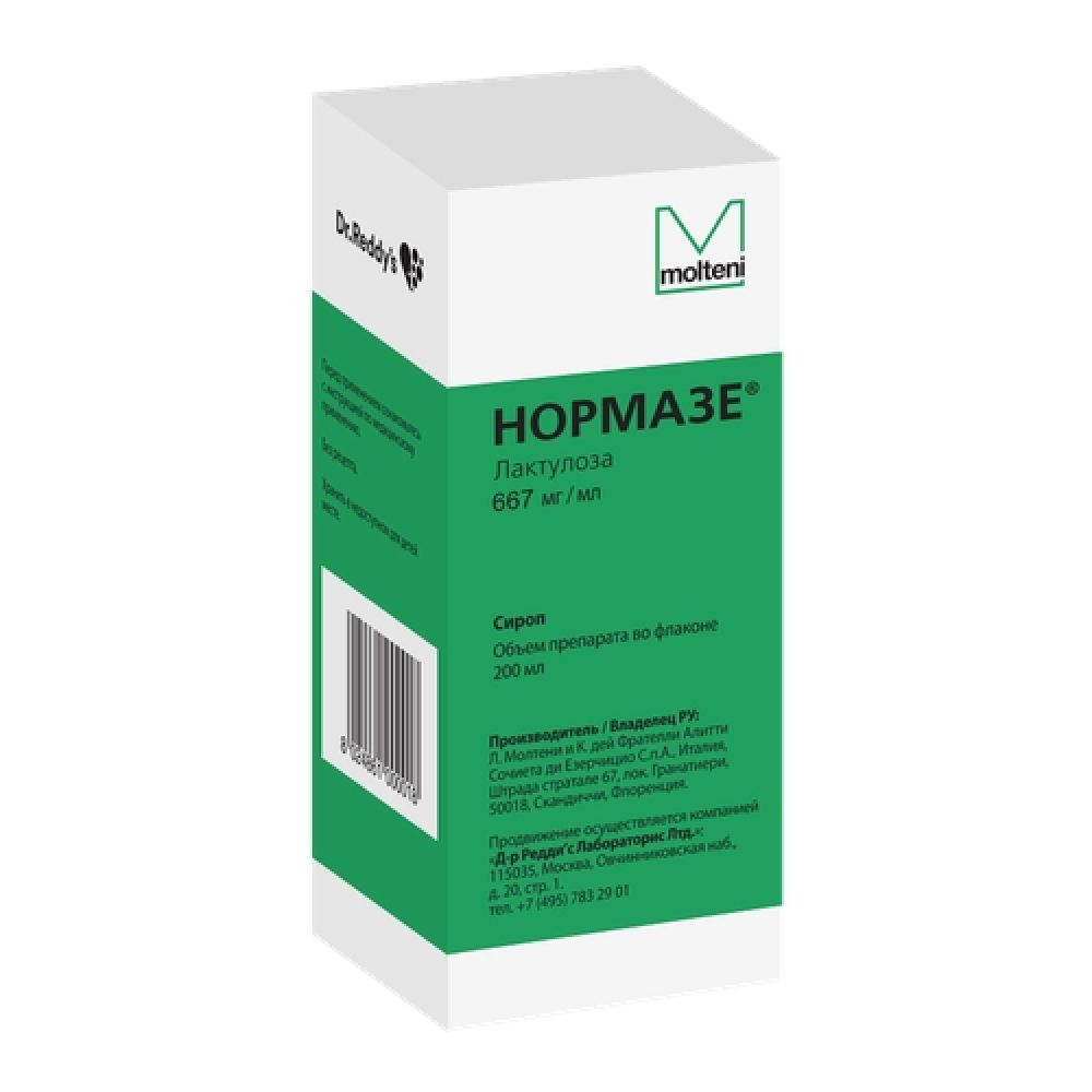 Латинское названиеNormaseФорма выпускаСиропСостав100 мл сиропа содержит:Активное вещество: лактулоза раствор (в пересчете на лактулозу)66,7 мг;Вспомогательные вещества: кислота лимонная; вода очищенная; ароматизатор сливочный №7 бис (пропиленгликоль, дигидрокумарин, ванилин).УпаковкаФлакон 200 мл.Фармакологическое действиеНОРМАЗЕ СИРОП - гипоаммониемическое, слабительное.ФармакодинамикаОказывает гиперосмотическое, гипоаммониемическое, слабительное действие, стимулирует перистальтику кишечника, улучшает всасывание фосфатов и солей кальция.Под влиянием препарата происходит изменение...