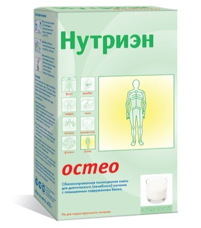 Нутриэн Остео - полноценная сбалансированная смесь с повышенным содержанием белка, кальция и фосфора, содержащая среднецепочечные триглицериды (МСТ) для взрослых и детей старше 3-х лет, нуждающихся в питании с высоким содержанием белка при различных заболеваниях, когда обычный прием пищи невозможен, ограничен или недостаточен.