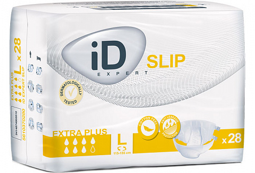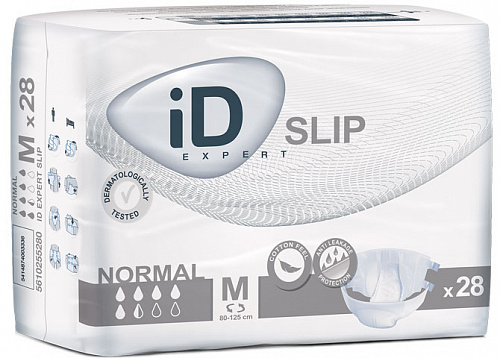 Подгузники Expert Slip Normalот компании iD, предназначены для использования при средней и тяжелой степени недержания мочи у взрослых, с размером талии от 115 до 155 см.