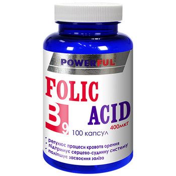 Фолиевая кислота ТМ Пауэрфул / Powerful № 100 – диетическая добавка, которая может быть рекомендована как дополнительный источник фолиевой кислоты. Способствует нормализации функционирования кровеносной и иммунной систем.