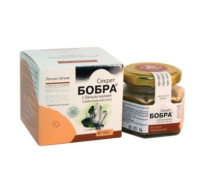 Секрет бобра с белым мумиё. Быстрое заживление - биологически активные вещества компонентов продукта оказывают противовоспалительное, противодиабетическое, противоопухолевое, бактерицидное, антигельминтное, ранозаживляющее, кровоостанавливающее, антисептическое действие, способствуют восстановлению иммунитета и профилактике изменений организма, вызванных иммунными нарушениями, бактериальными, инфекционными процессами, гельминтным заражением, хроническими воспалительными процессами, нарушением обмена веществ и состава крови, нарушением функций печени и почек, метастазированием, лучевой терапией.