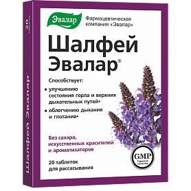 Таблетки для рассасывания Шалфей Эвалар способствуют улучшению функционального состояния верхних дыхательных путей, в том числе горла. Они удобны в применении, так как в любой необходимый вам момент создают в ротовой полости эффект, подобный мини-ингаляции, «орошают» горло полезными веществами экстракта и эфирного масла шалфея.