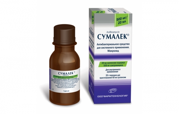 Сумалек - антибактериальное средство широкого спектра действия азитромицин, первый представитель подкласса азалидов, действует бактериостатически. Связываясь с 50S субъединицей рибосом, угнетает пептидтранслоказу на стадии трансляции, подавляет синтез белка, замедляет рост и размножение бактерий, в высоких концентрациях оказывает бактерицидный эффект.