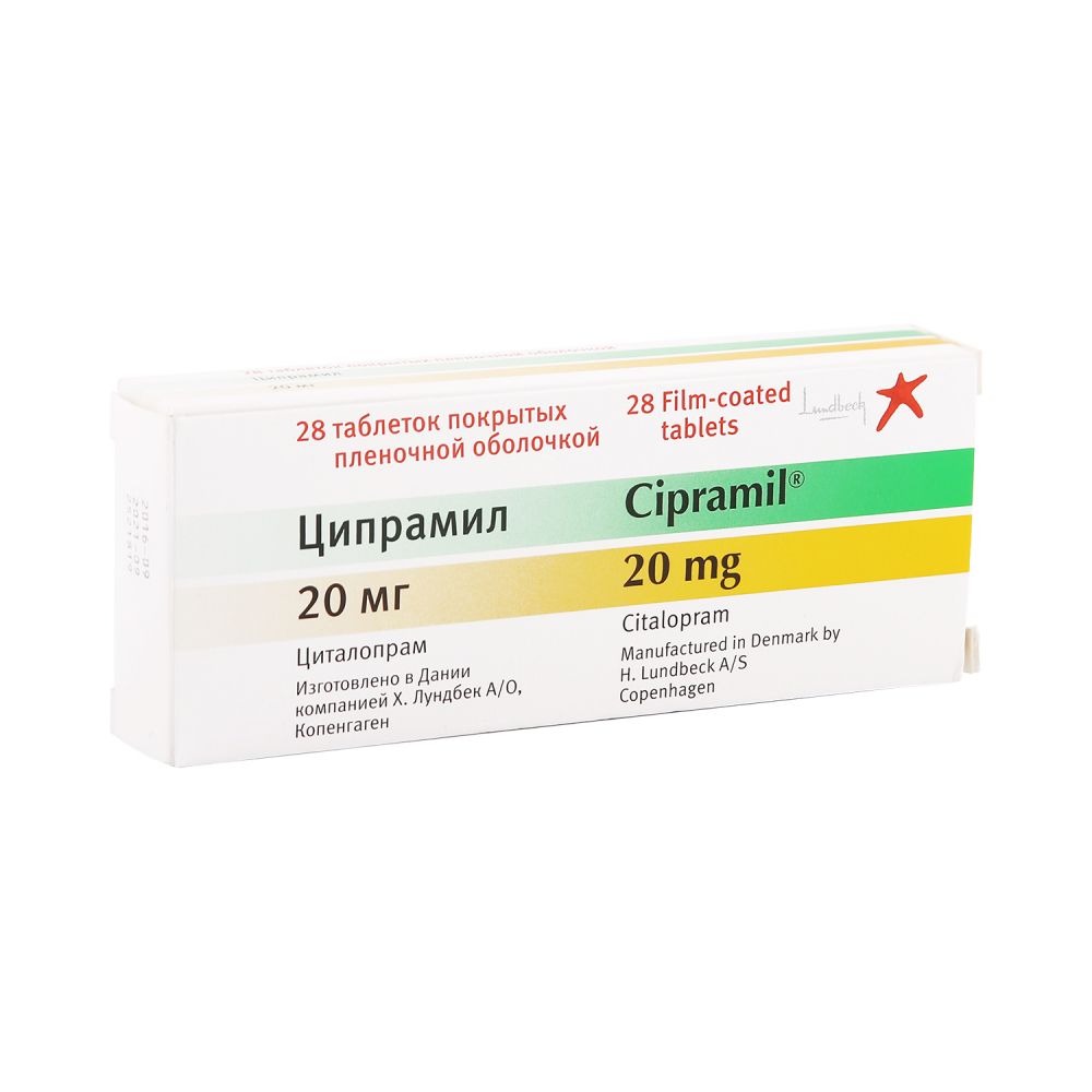 Фармакологическое действие Антидепрессант, селективный ингибитор обратного захвата серотонина. Антидепрессивный эффект обычно развивается через 2-4 недели терапии. Ципрамил практически не обладает или обладает незначительной способностью к связыванию с целым рядом рецепторов, включая гистаминовые, м-холинорецепторы и адренорецепторы. Седативный эффект отсутствует. В очень малой степени ингибирует цитохром P450 IID6, поэтому не взаимодействует...