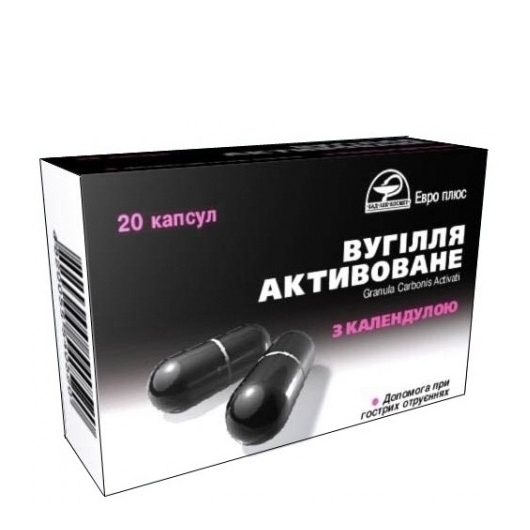 Капсула препарата состоит из гранул угля активированного, за счет чего имеет большую поверхностную активность и соответственно лучшие сорбционно-детоксикационные способности. В состав препарата входит календула, которая реализует свои целебные свойства и улучшает секреторную активность желудка, усиливает процесс желчеобразования и желчевыделения.