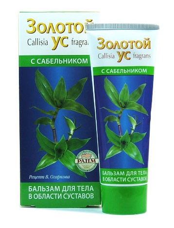 Применение крем-бальзама «Золотой ус» с экстрактом сабельника, позволяет провести эффективную профилактику воспалений и отложения солей, а также в значительной мере снизить интенсивность уже имеющихся симптомов. Благодаря сбалансированному комплексу натуральных растительных экстрактов, крем-бальзам усиливает циркуляцию крови в очаге воспаления, способствует растворению и выведению из суставов солей, улучшает эластичность связок, помогает разрабатывать больные суставы.